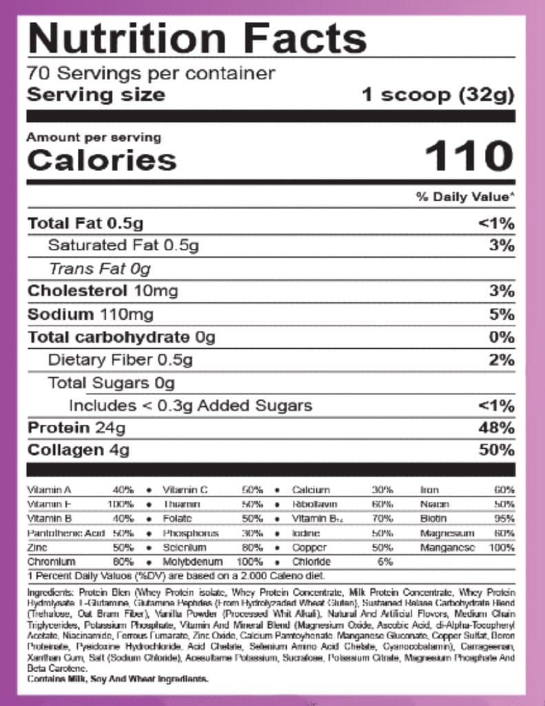 La proteína GOLD ISOLATE FOR WOMEN está adicionada con Proteína (24g) Ayuda a el desarrollar y mantener la masa muscular, Colágeno (4g) Promover la mejoría en la elasticidad de la piel y ayudar en la recuperación de la pérdida de cartílago, Carnitina (1g) transportar los ácidos grasos hacia el interior de las mitocondrias -orgánulo celular que se encarga de suministrar la energía necesaria para la actividad celular, Biotina (30 mcg) ayuda a convertir los carbohidratos, las grasas y las proteínas que consume en energía.